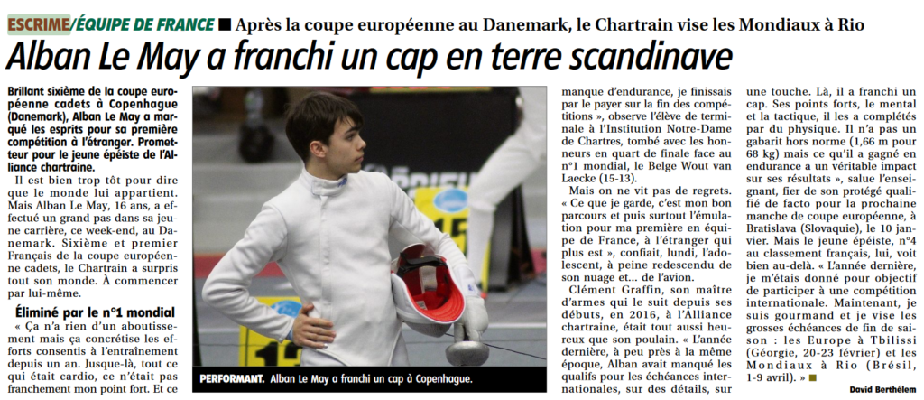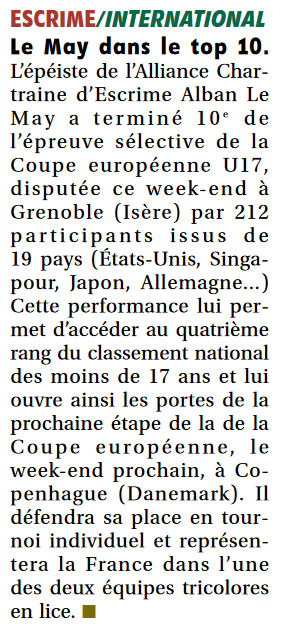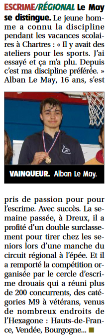 Presse Echo Républicain 04/12/2025 Echo Républicain 26/11/2025 Echo Républicain 22/11/2025 Echo Républicain 19/06/2025 Ecoutez le podcast de l’interview de notre tireur Alban Le MAY : https://radiograndciel.fr/podcast/attention-jeune-talent-dans-le-monde-de-lescrime/ Echo Républicain 15/10/2024 Echo Républicain 29/08/2024 Echo Républicain 25/04/2024 Echo Républicain 18/03/2024 Echo Républicain 17/03/2024 Echo Républicain 14/11/2023 Echo Républicain 01/09/2023 Echo Républicain 01/02/2023 Echo Républicain 28/11/2022 Les membres du Cercle d’escrime de l’Alliance chrartraine proposent des démonstrations dynamiques à côté de leur stand, sur la butte des Charbonniers. pic.twitter.com/H64qXNSf4z— L'Écho Chartres (@lecho_chartres) September 3, 2022 Echo Républicain du 5 septembre 2022 Echo Républicain du 5 septembre 2022 Echo Républicain du 1er mars 2022